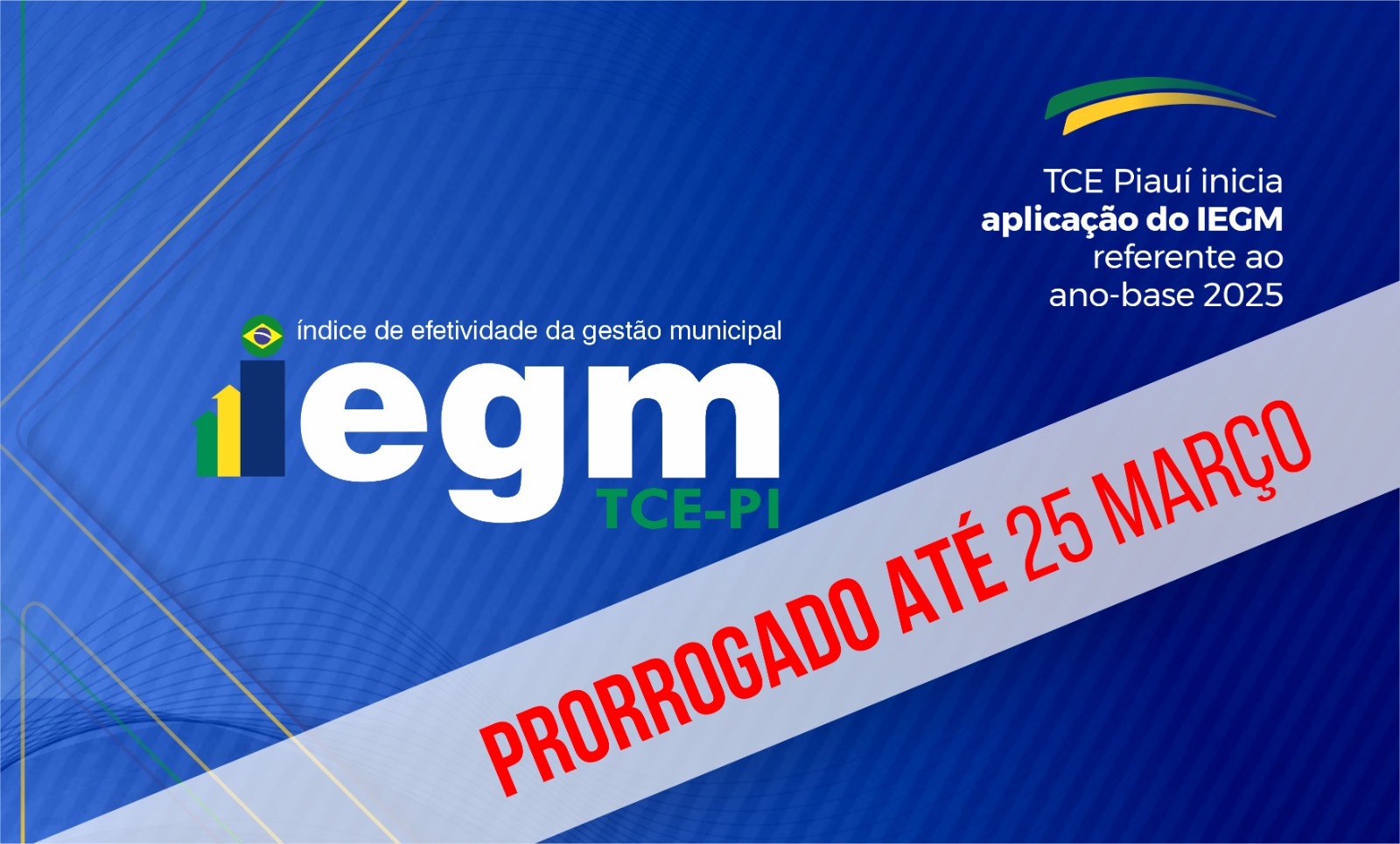 O Tribunal de Contas do Estado do Piauí (TCE-PI) informa que foi prorrogado até o dia 25 de março de 2026 o prazo para preenchimento dos questionários do Índice de Efetividade da Gestão Municipal (IEGM) 2026, com dados referentes ao ano-base 2025. Os questionários estão disponíveis para preenchimento desde o dia 12 de fevereiro. O […]