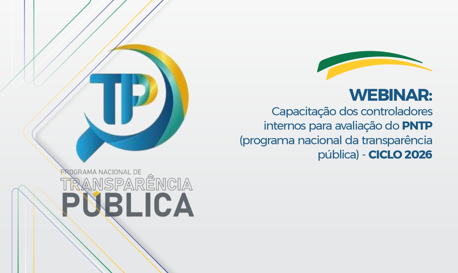 Próximos Eventos Inscrições Abertas Eventos Encerrados Externo Início em 07/04/2026 WEBINAR: CAPACITAÇÃO DOS CONTROLADORES INTERNOS PARA AVALIAÇÃO DO PNTP (PROGRAMA NACIONAL DA TRANSPARÊNCIA PÚBLICA) - CICLO 2026 Público Alvo: Controladores internos e prestadores de serviço de sistemas de gestão da transparência.Vagas Restantes: 84
